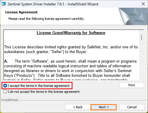 3) 압축 해제한 "Sentonel System Driver Installer 7.6.1.exe" 파일을 실행하여 설치합니다.